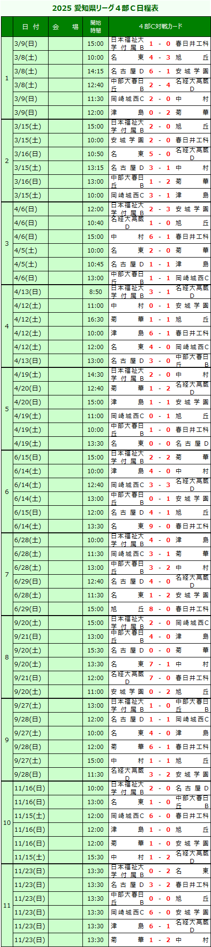 | 高円宮杯U-18サッカーリーグ 愛知県リーグ | |||||||||||||||||||||||||||||||||||||||||||||||||||||||||||