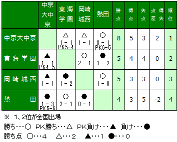 決勝リーグ戦は、80分で同点の場合は即PK戦を行う。なお、順位決定に必要のないPK戦は行わない。