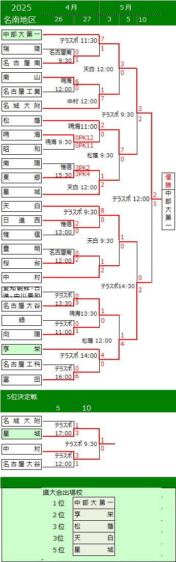 ⑩ 本大会の上位2チームに東海総体、全国総体の出場権を与えるものとする。